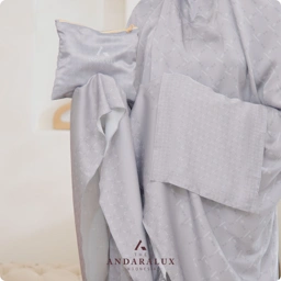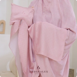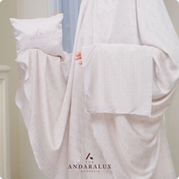 Dihiasi dengan motif monogram eksklusif The Andaralux, desainnya simple namun tetap elegan, menciptakan tampilan mewah yang tetap cocok untuk anak-anak. Dengan potongan yang pas dan bahan yang jatuh sempurna, mukena ini tidak hanya indah dipandang tetapi juga nyaman digunakan sepanjang hari.
